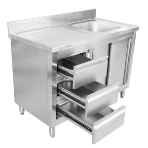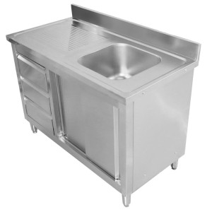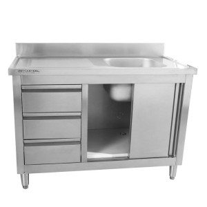 Meuble Plonge 1 Bac avec Dosseret et 3 Tiroirs - 1200 x 600 mm - Bac à Droite